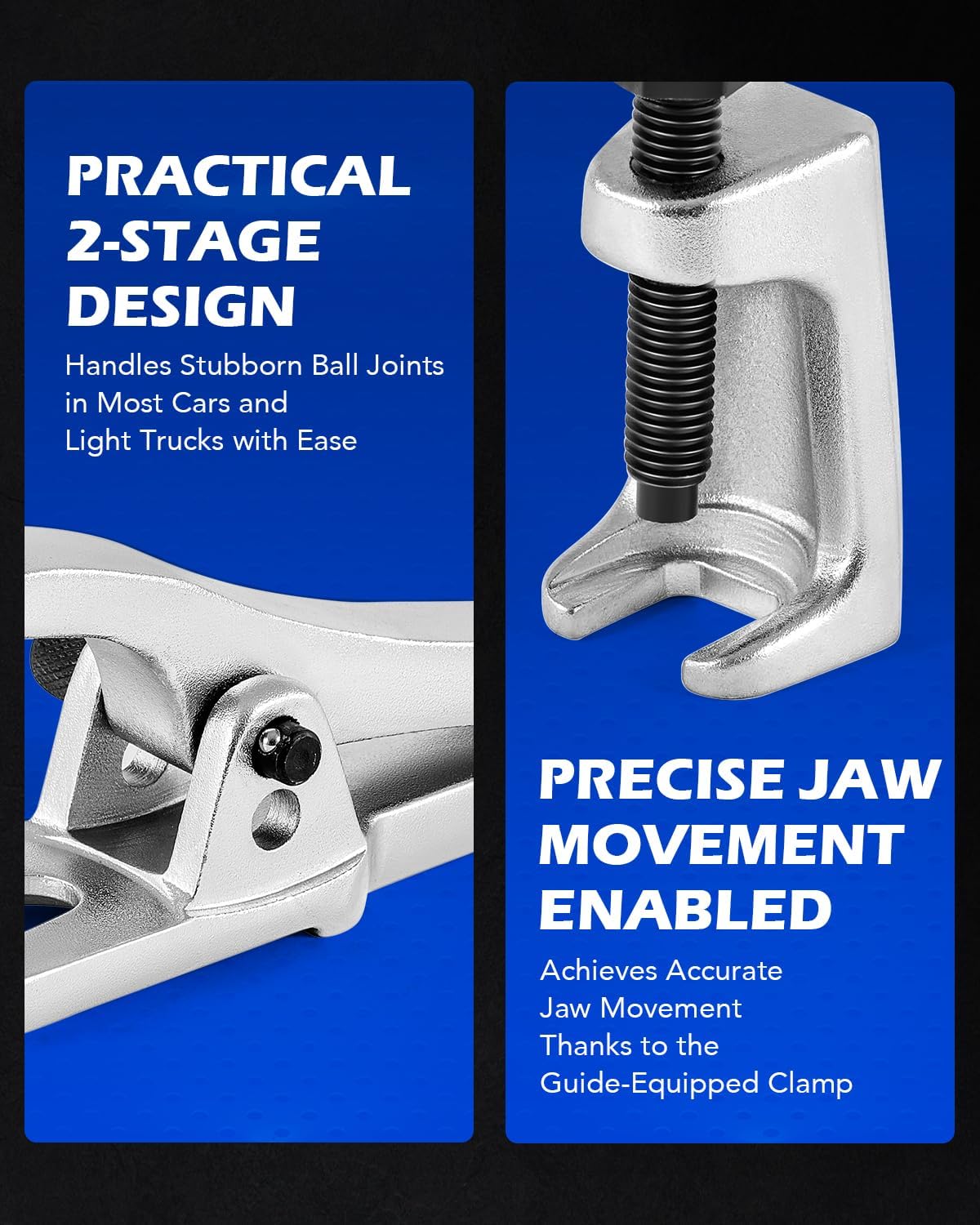 This special 2-stage design works with the steering and suspension ball joints found in most cars and light trucks.