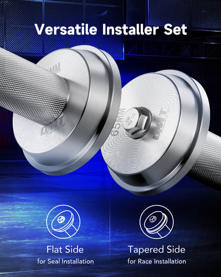 Thanks to the 9 drive discs with tapered and flat sides, our multipurpose metric wheel bearing press kit allows you to install most standard races and seals, also working perfectly on cam seals, main seals, and more.