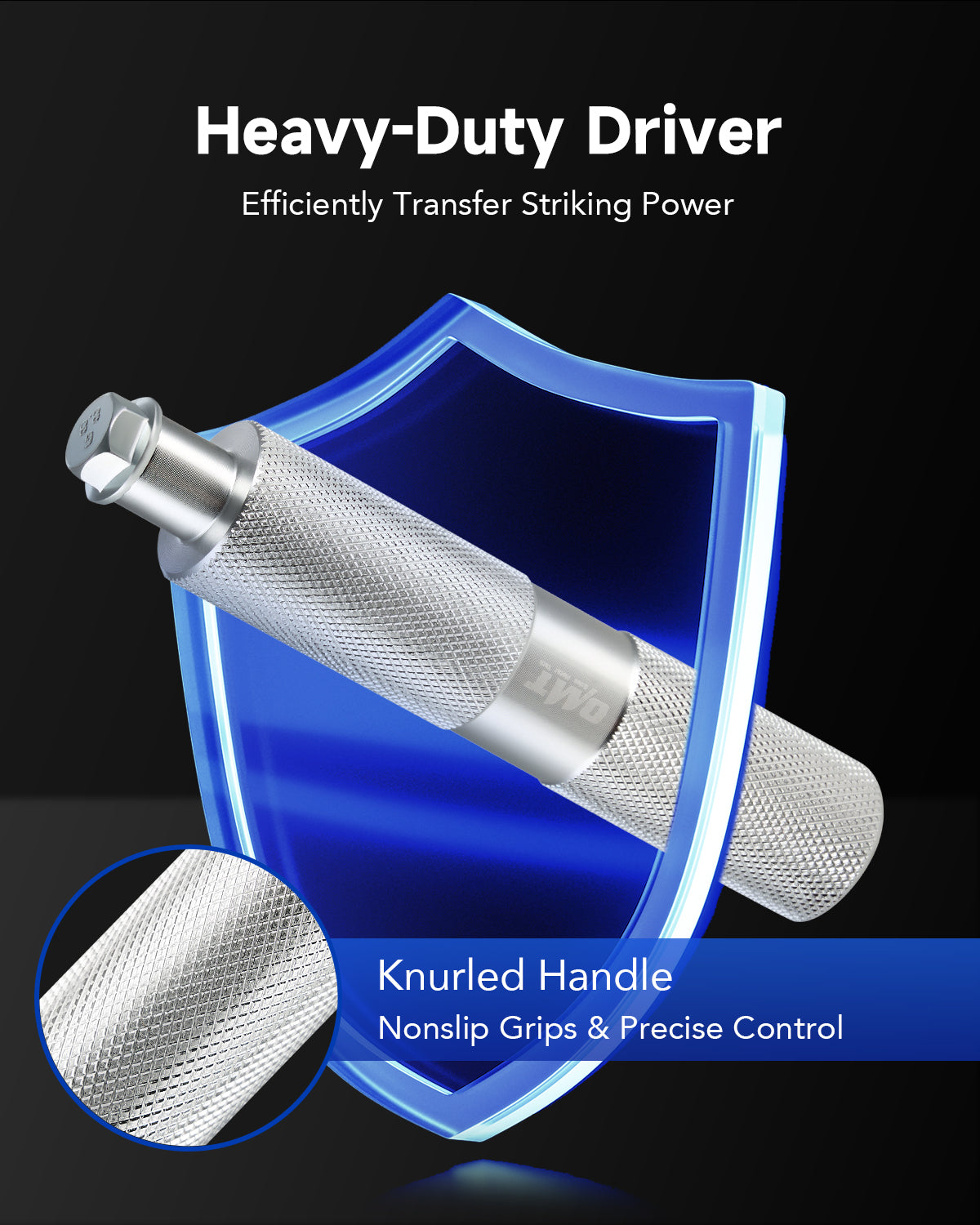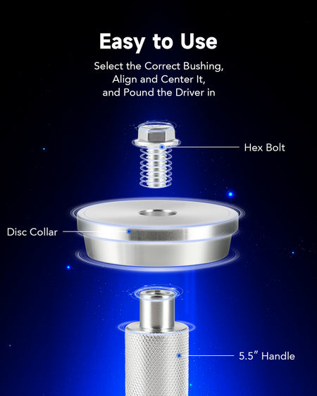 Get bearing installation done right with Orion Motor Tech's 10-piece bearing press kit! Our versatile bushing driver set allows you to quickly and effectively press races and seals into place without damaging the axle housing, ideal for repairing a wide range of vehicles from cars to trucks to motorcycles. The knurled driver handle offers a sure nonslip grip, while the clear laser markings on each of the 9 bearing adapters allow quick size identification. Constructed from sturdy aluminum alloy with protective coating, this durable bearing race and seal driver set offers superior strength and corrosion resistance for long-lasting resilient service. OMT's bearing and seal installer set also comes with a rugged storage case to keep everything organized for easy storage and transport.