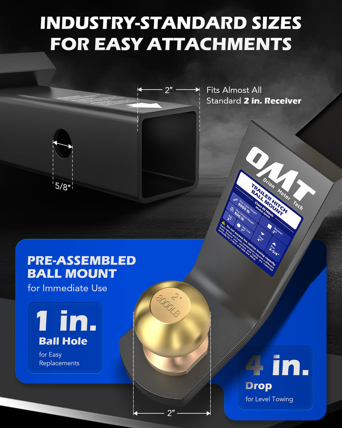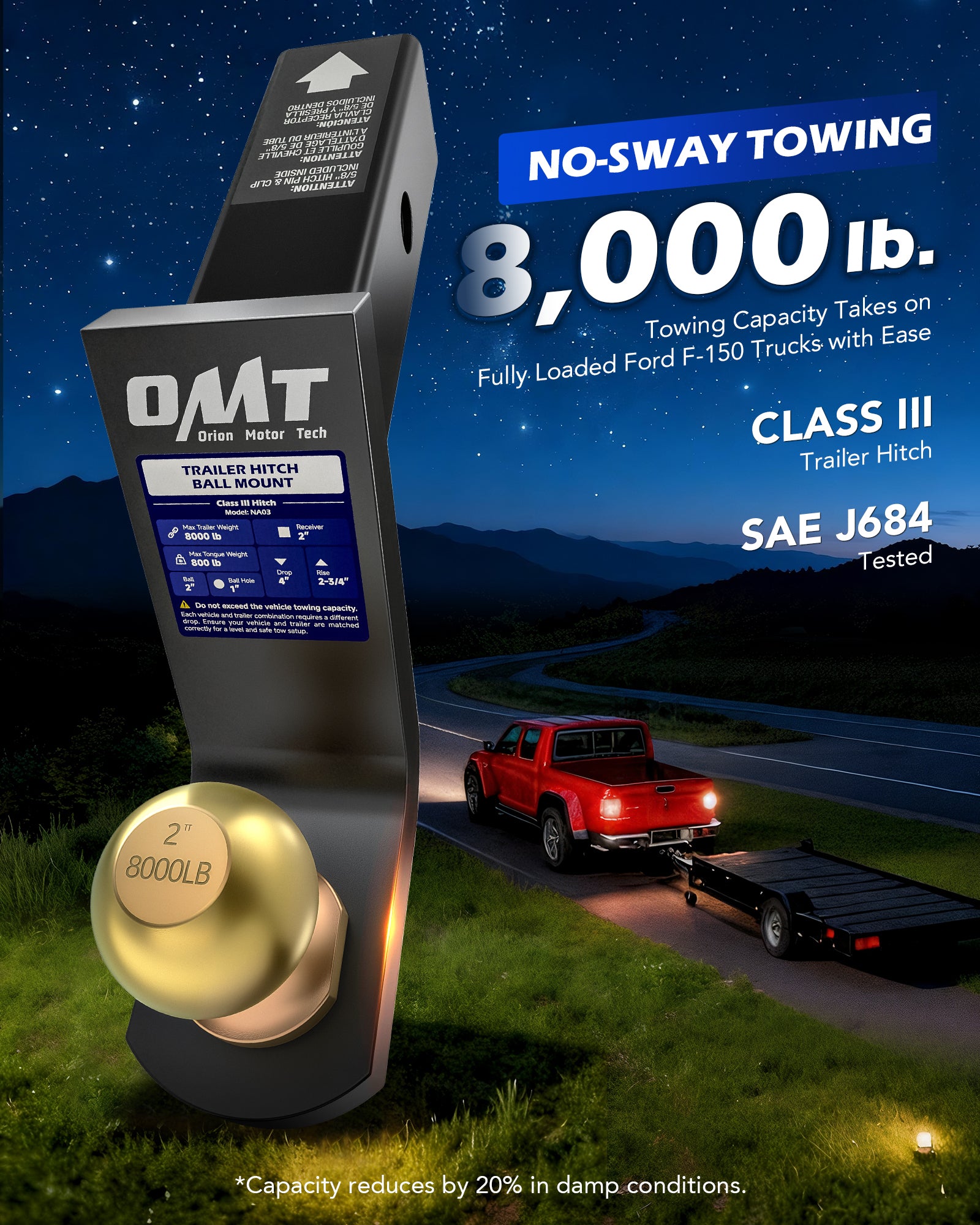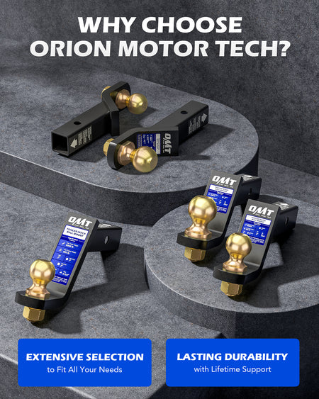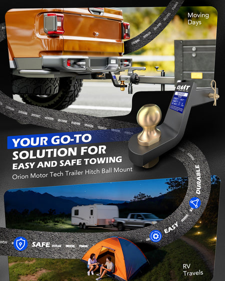 • No More Hitch Sizing Stress: Orion Motor Tech's trailer hitch ball mount effortlessly connect it to your vehicle to tow everything from fishing boats to RVs, campers, and utility trailers