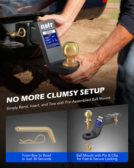 • Skip the Tools: Our pre-assembled ball hitch comes with a pin and clip, eliminating the need for any tools. Simply slide it into the receiver and secure it in seconds, getting you on the road faster than buckling your seatbelt