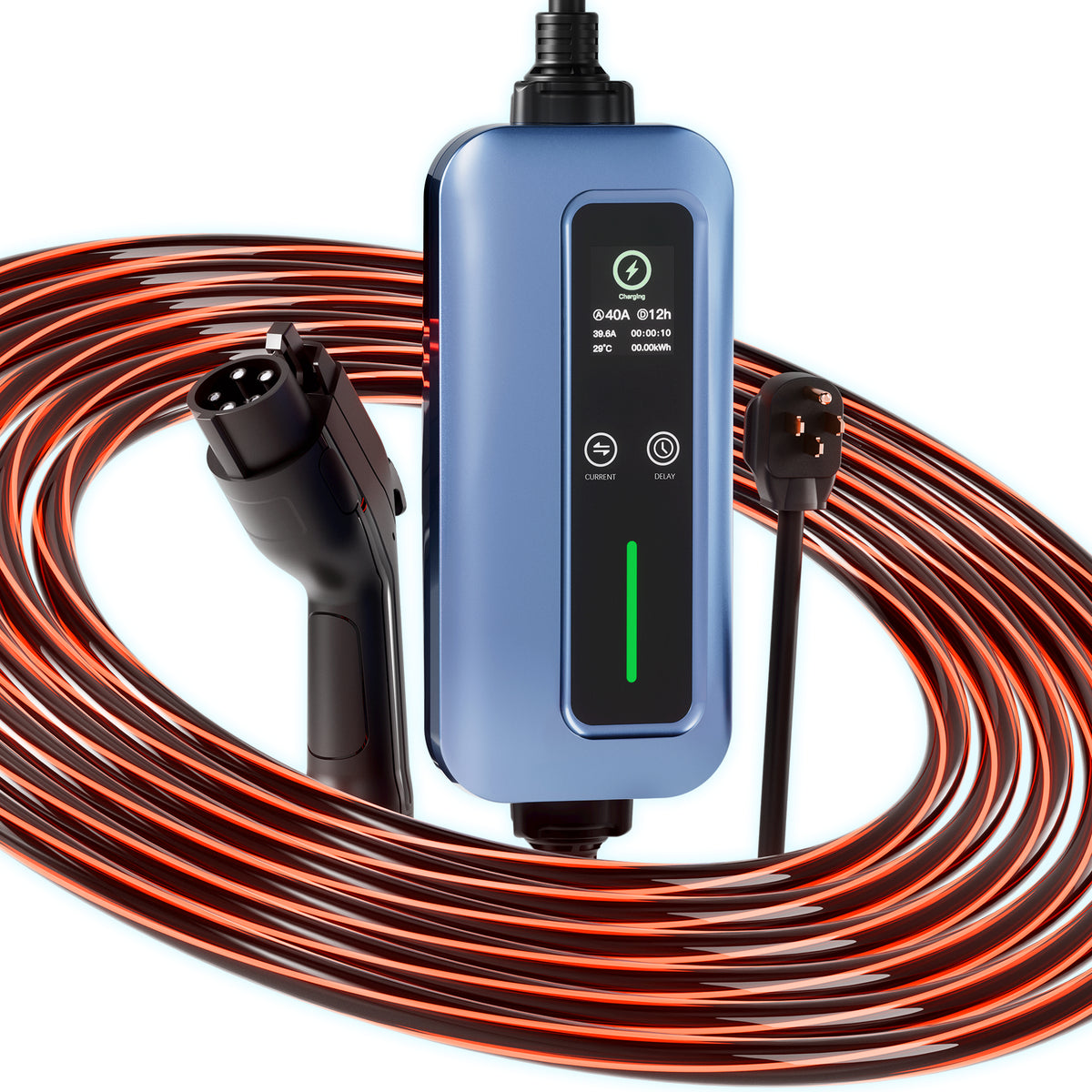 Level 2 & 1 Portable EV Charger with Glowing Cable 16-40A 25FT - Red