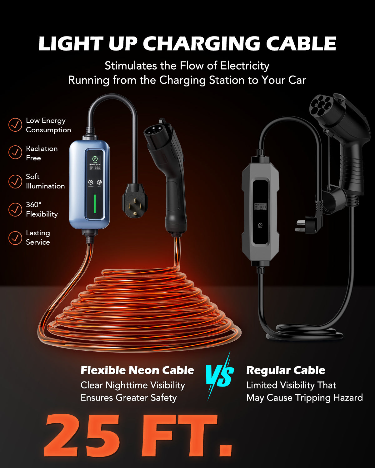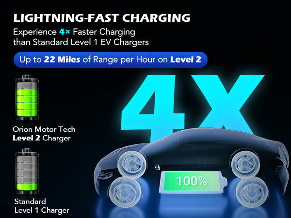 • Wait Less, Drive More: Say goodbye to slow level 1 charger and experience 4X faster charging with our lighted EV charger that provides up to 22 miles of range per hour of charging thanks to a powerful 16 amp output.