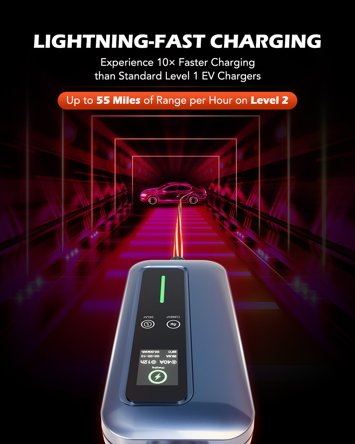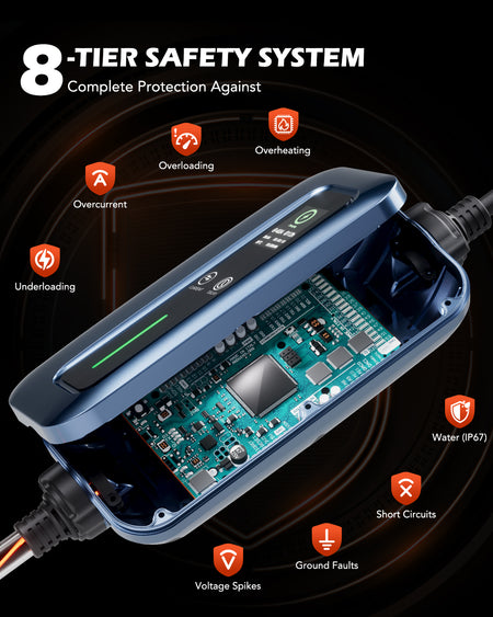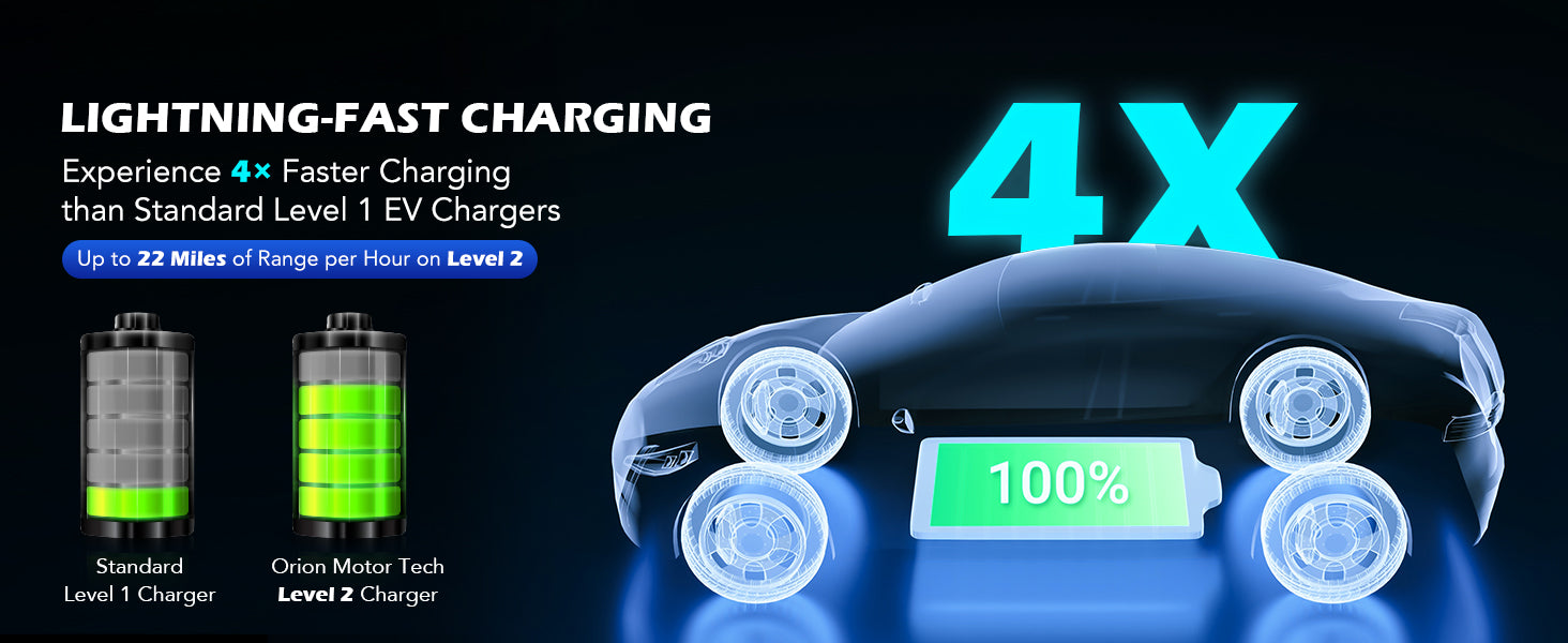 Ultra Fast Charging - 40 amp output provides up to 10x faster charging than level 1 chargers.