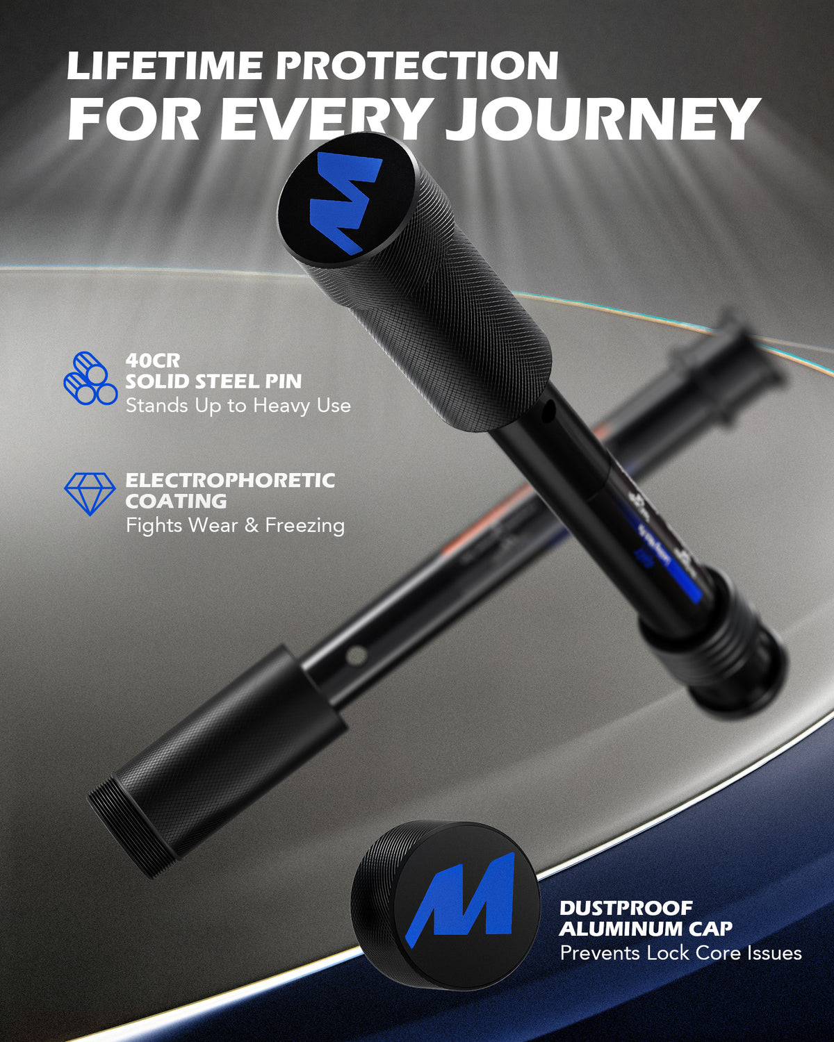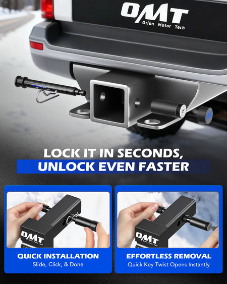 Keep your trailer safe and sound with Orion Motor Tech's hitch lock. The hardened steel core and drop-proof design fend off any would-be thieves, while the precisely sized 5/8 in. pin slides perfectly into all 2 in. receivers for a snug, wobble-free fit. Installing is a breeze—just slide it in, twist the aluminum cap, and you're locked; removing it is just as simple with a quick key twist. Say goodbye to annoying rattles: the 40Cr steel pin, 24 O-rings, and triple locking with drilled holes and R-pin keep things quiet and secure, even for kids and pets on bumpy trips. Plus, the corrosion-proof electrophoretic coating shields your hitch pin lock from rust and extreme weather, giving you reliable protection wherever your adventures take you.