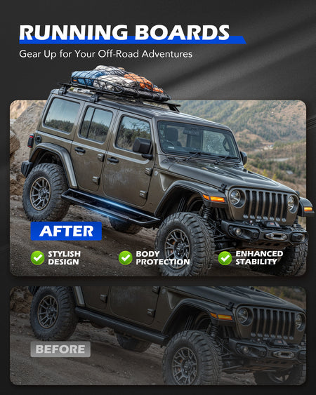 • Fitment Details: These side boards are compatible with 2007-2018 Jeep Wrangler JK Unlimited 4 Door only, ensuring a perfect fit and enhanced functionality for your off-road adventures